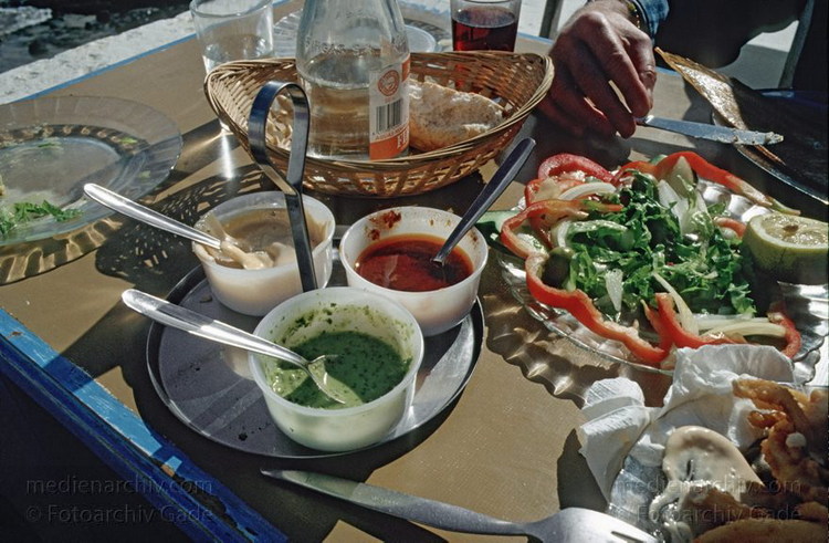 November 1993. Spanien. Kanarische Inseln. Lanzarote. Arrieta - Restaurant Miguel. Essen