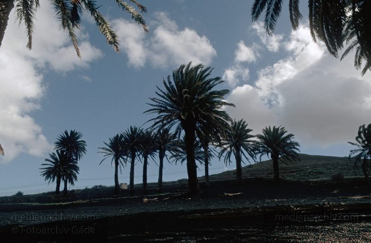 November 1995. Spanien. Kanarische Inseln. Lanzarote. Haria. Palmen. Baum. Bäume