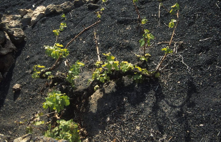 April 1995. Spanien. Kanarische Inseln. Lanzarote. Flora. Pflanzen. Vegetation. Weinpflanze