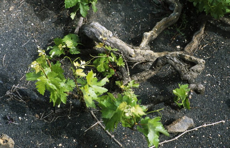 1994. Spanien. Kanarische Inseln. Lanzarote. Weinpflanze mit Tauben.