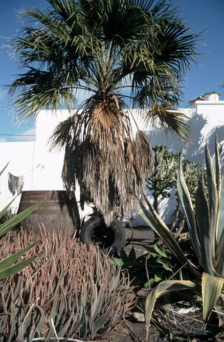 Dezember 1996. Spanien. Kanarische Inseln. Lanzarote. Palme