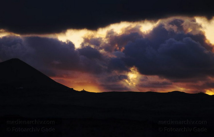 Dezember 1996. Spanien Kanarische Inseln. Lanzarote. Farmara. Abendstimmung. Sonnenuntergang