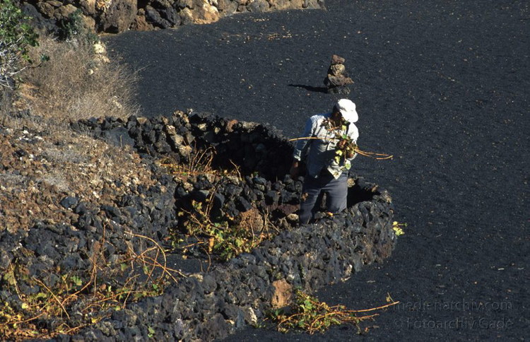 Dezember 1996. Spanien Kanarische Inseln. Lanzarote. Weinbauer