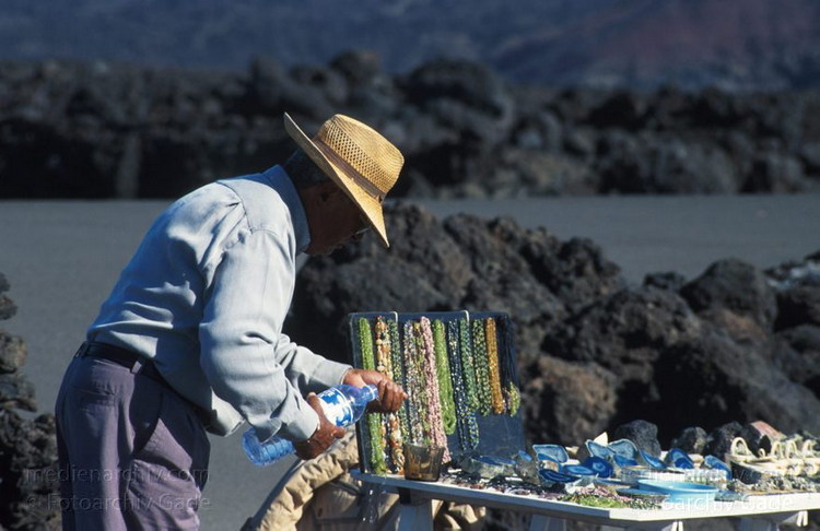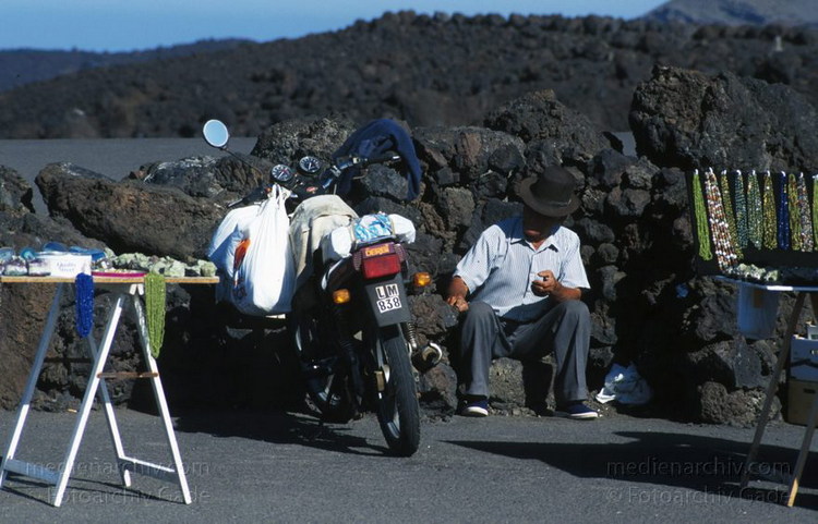 Dezember 1996. Spanien Kanarische Inseln. Lanzarote. Einheimischer Souvernirhändler