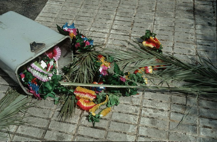 1992. Spanien. Kanarische Inseln. Lanzarote. Arrecife - Spain. Canary Islands - Mülleimer mit Blumen