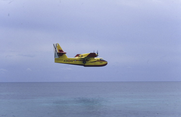 2005. Spanien. Balerarische Inseln. Mallorca. Cala Millor. Wasserflugzeug über dem Mittelmeer -
