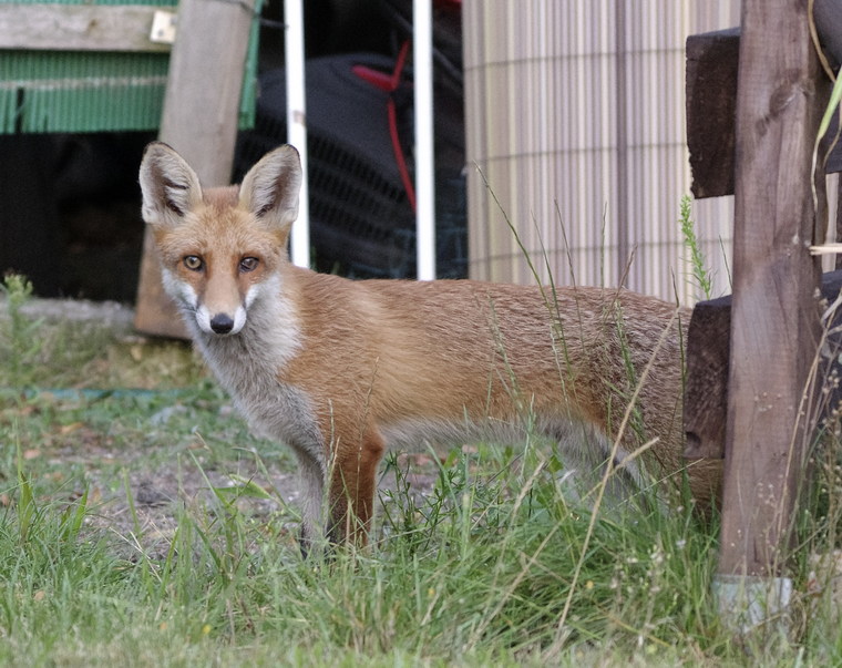 Juni 2021. Berlin. Fauna. Tier. Junger Fuchs auf dem Gelände von Bootsstände Lahe