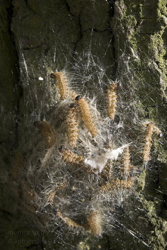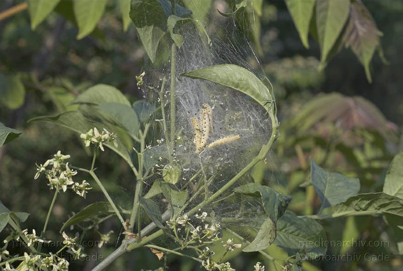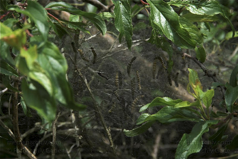 14. 5. 2006. Berlin. Flora. Fauna. Tiere. Insekten. Raupen der Gespinstmotte. Netz, Kokon.