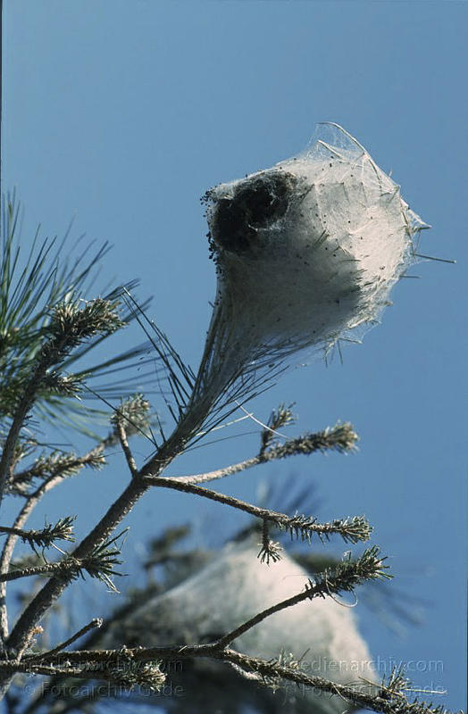 März 1997. Spanien. Andalusien. Sierra Nevada. Fauna Tiere. Insekten. Mottengespinst an einem Baum . Spain. Andalusia. España Andalucía