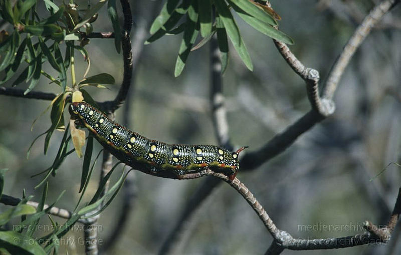 1991. Spanien. Kanarische Inseln. Teneriffa. Fauna. Tiere. Raupe