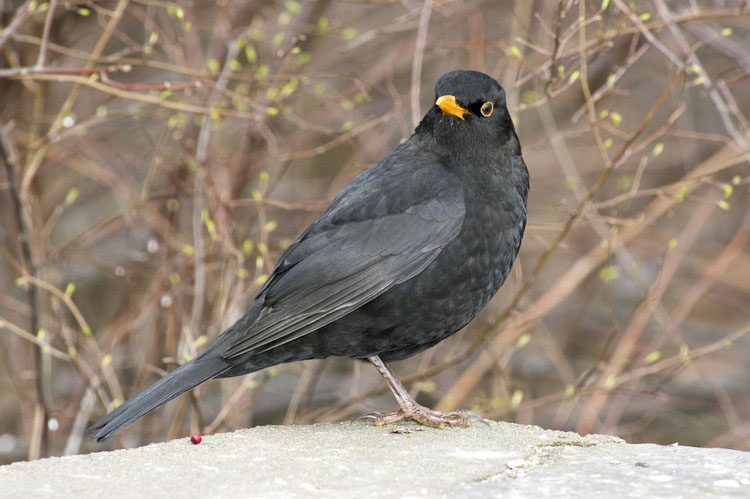 Februar 2016. Berlin. Park Rehberge. Fauna. Vogel. Amsel. Turdus merula