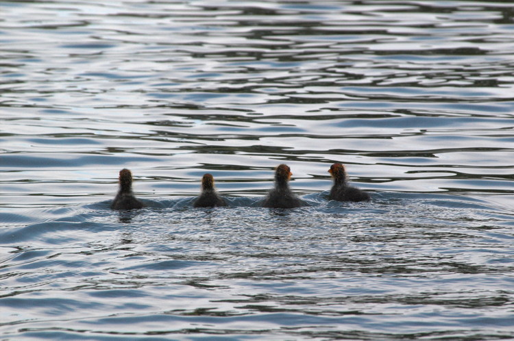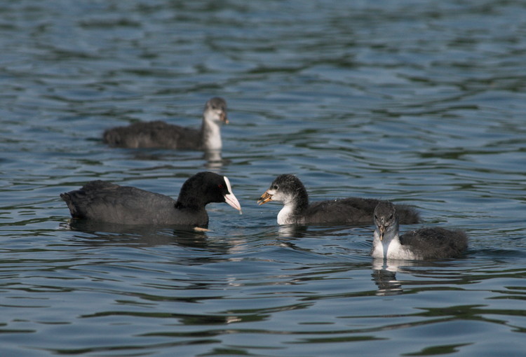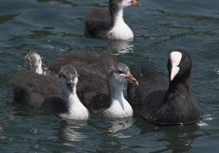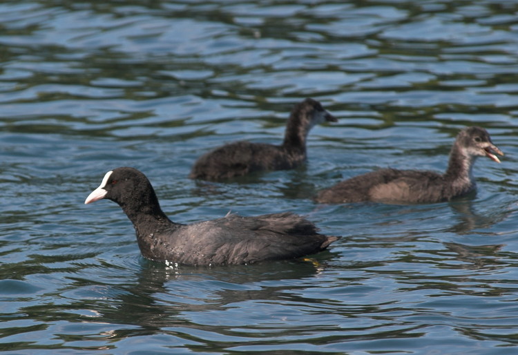 25. 6. 2006. Mecklenburg-Vorpommern. Feldberger Seengebiet. Carwitz. Fauna, Tiere. Wasservogel, Wasservögel, Blässhühner, Blässhuhn