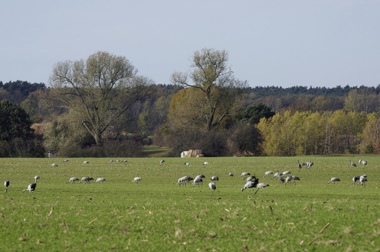 14. 10. 2016. Brandenburg. Rhinluch. Kraniche bei den Linumer Teichen. Zugvogel. Grus grus