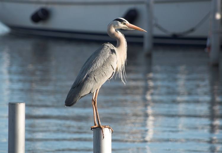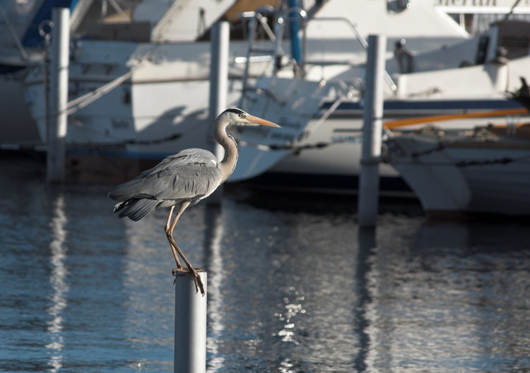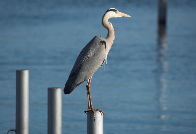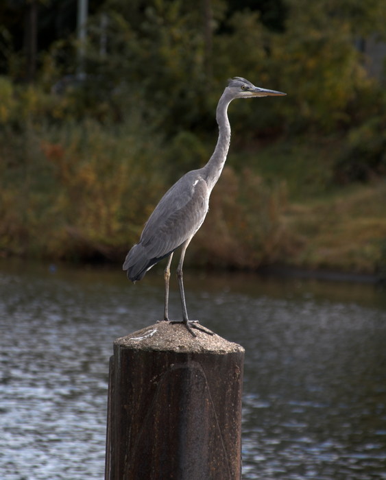 Oktober 2005. Berlin. Vogel Fauna Tiere.Vögel. Reiher auf einem Pfeiler im Hohenzollernkanal.