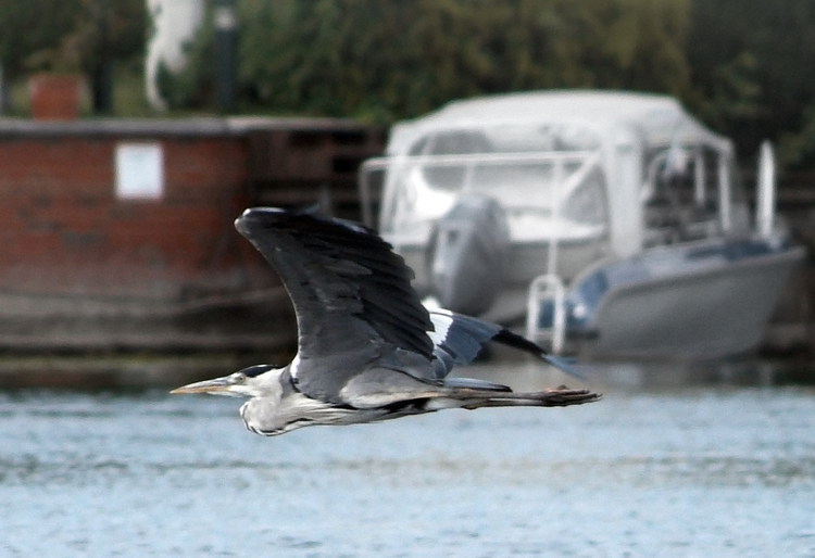 26. 5. 2012. Berlin. Havel. Fauna. Vogel. GraureiherGraureiher (Ardea cinerea) Fischreiher. Fliegender Graureiher.