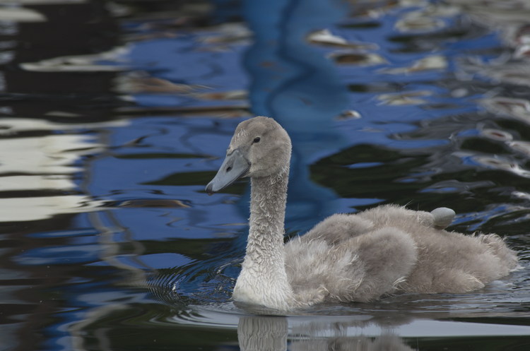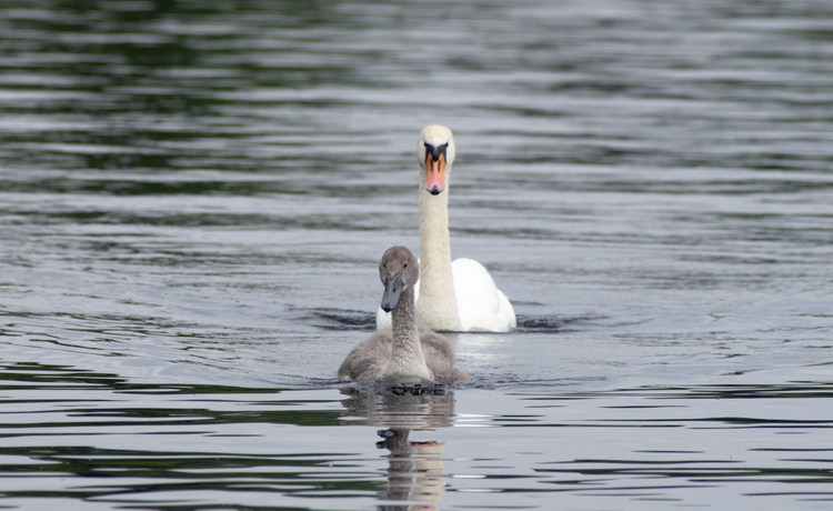 12. 7. 2017. Berlin. Tegeler See. Fauna. Vogel. Schwan mit Küken. Cygnin
