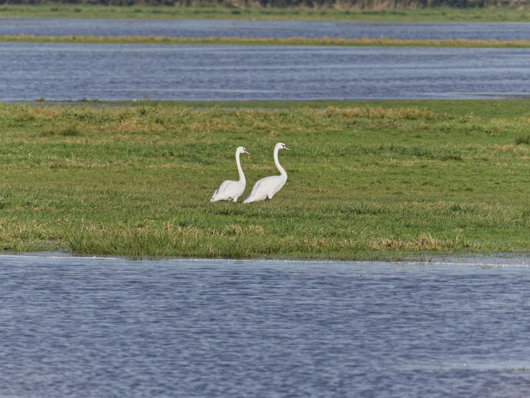 19. 10. 2019. Brandenburg. Rhinluch bei Linum. Schwäne auf einer Feuchtwiese. Fauna. Tier. Vogel. Schwan