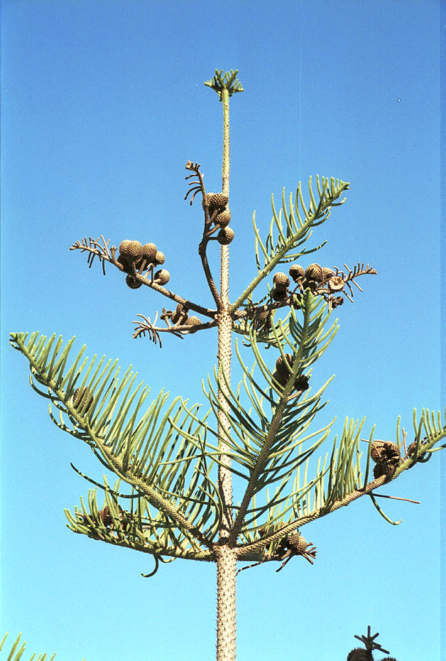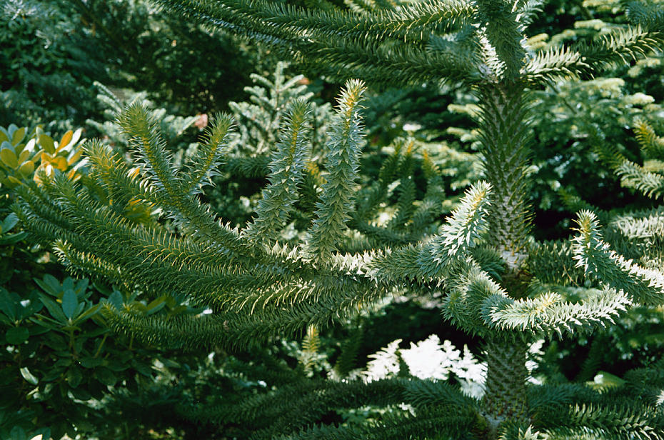 Juli 2002. Flora. Pflanzen. Baum. Bäume. Araukariegewächse. Chilenische Araukarie (Araucaria araucana)