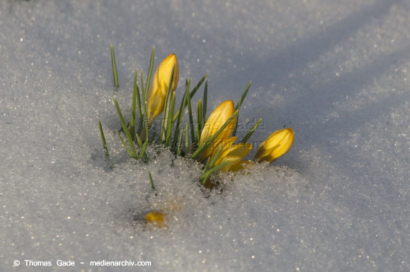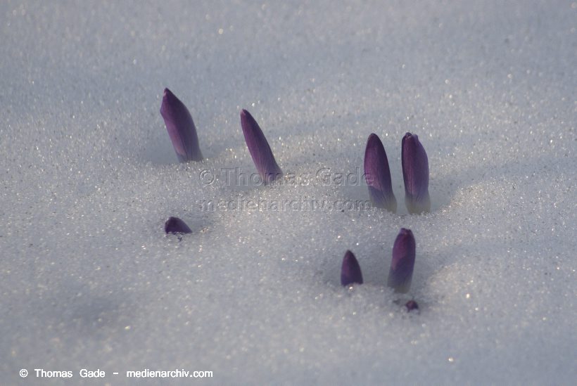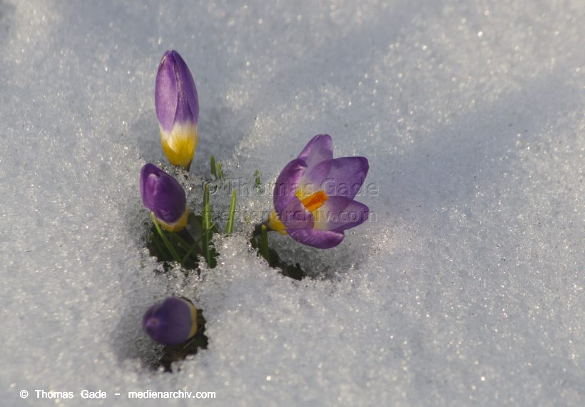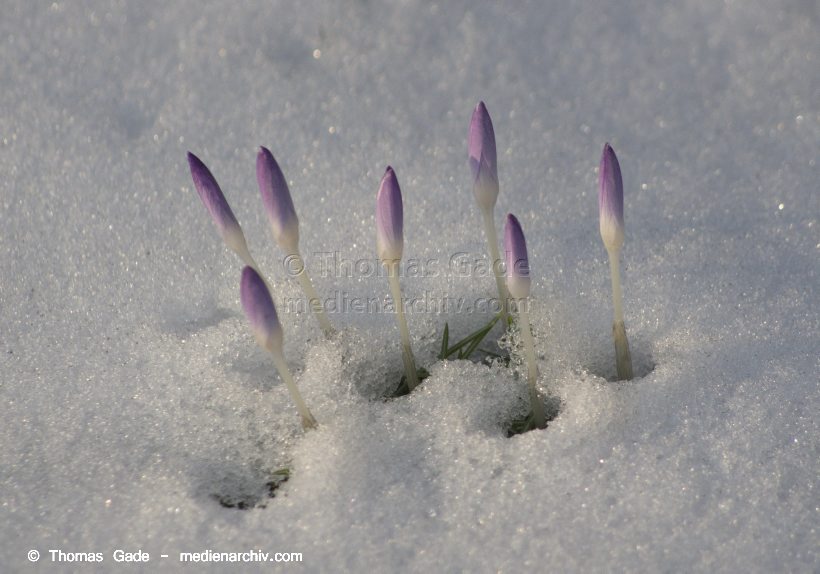 14. 3. 2013. Berlin. Winter. Schnee. Flora. Pflanzen. Krokusse. Crocus. Frühblüher