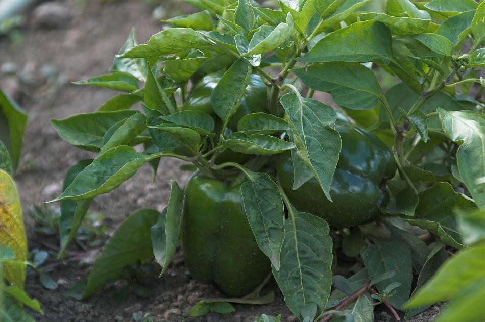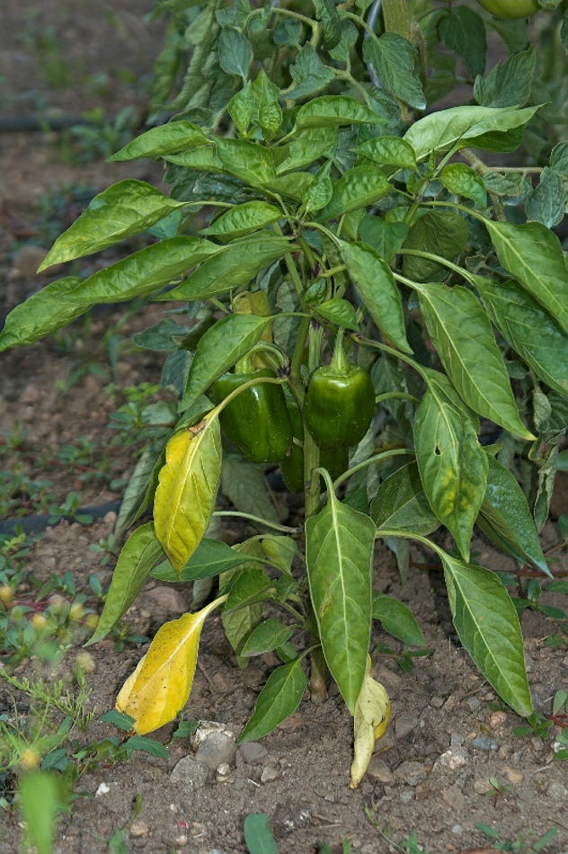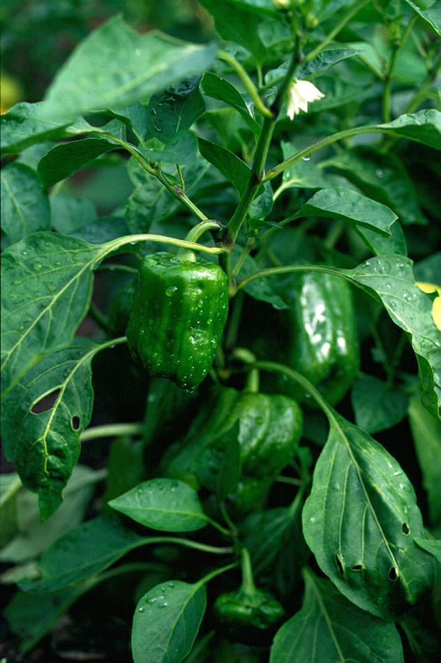 Beschreibung: 24. August 2002. Mecklenburg-Vorpommern. Carwitz. Flora. Pflanzen. Gemüse. Grüner Paprika (Capsicum spec.). Nachtschattengewächse (Solanaceae)