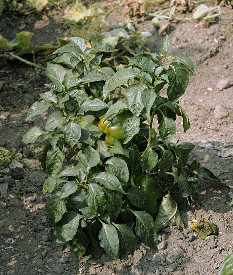 Beschreibung: 1999. Mecklenburg-Vorpommern. Carwitz. Flora. Pflanzen. Gemüse. Paprika (Capsicum spec.). Nachtschattengewächse (Solanaceae).