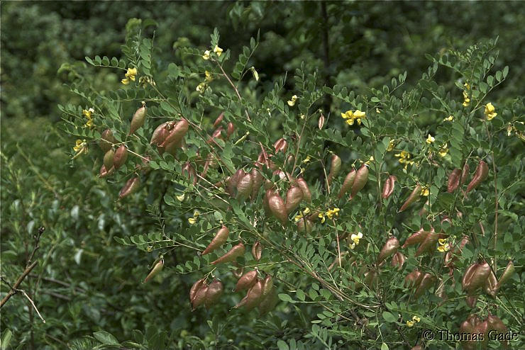 29. 4. 2007. Berlin. Flora. Pflanzen. Strauch. Sträucher. Gelber Blasenstrauch (Colutea arborescens). Familie: Schmetterlingsblütler (Fabaceae).