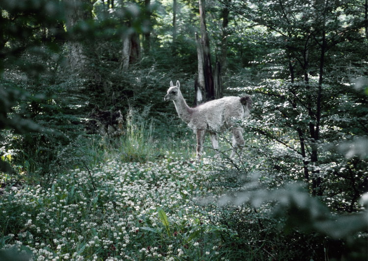 1981. Südamerika. Lateinamerika. Argentinien. Fauna Tiere. Lamas im Wald