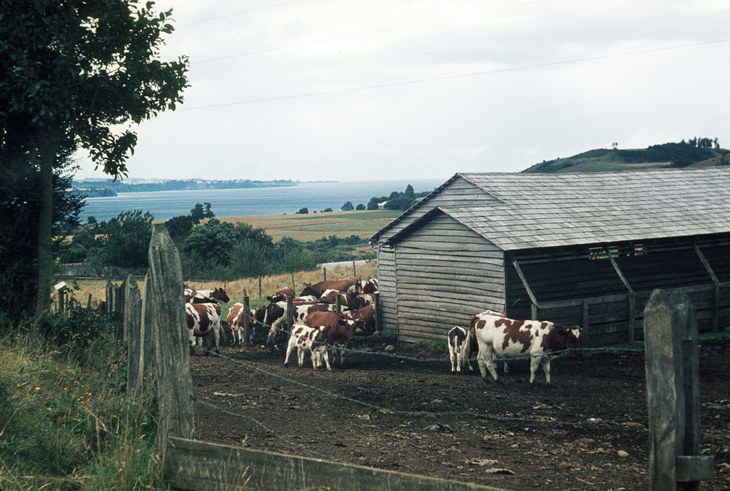 1968. Lateinamerika. Südamerika. Chile. Ranch / Fundo am Llanquihue See im Süden. Viehzucht. Rinder. Stall