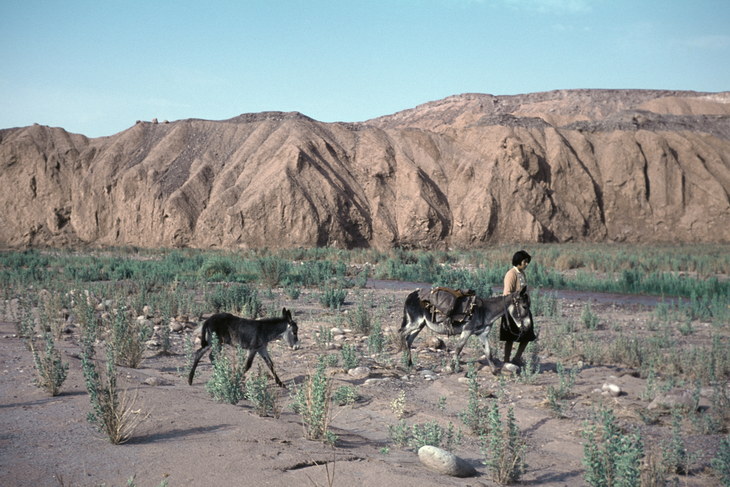 Chile 1968. Atacamawüste. Eine Bäurin holt Wasser aus dem Loa Fluß.