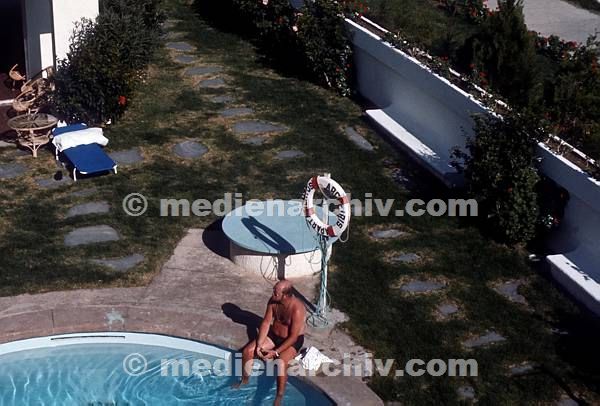 vermutlich 1975. Spanien. Kanarische Inseln. Gran Canaria. Mann am Swimmingpool