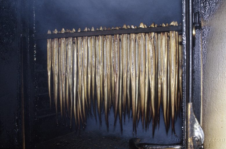 1980. Schleswig-Holstein. Fehmarn. Geräucherte Aale