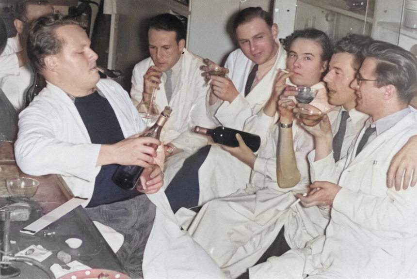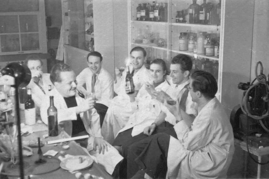 Feier mit Alkohol und Ziaretten im LAbor.