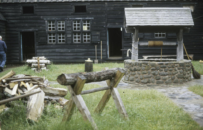Nova Scotia - Neuschottland. Bock mit Feuerholz. Brunnen im Hof.