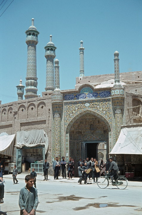 1968. Vorderasien. Nahost. Middle East. Iran. Qom. Hauptplatz auf das Heiligentum Hazrat Massuma (Fatma -i-Moschee). Durchblick durch ein Tor des Moschee