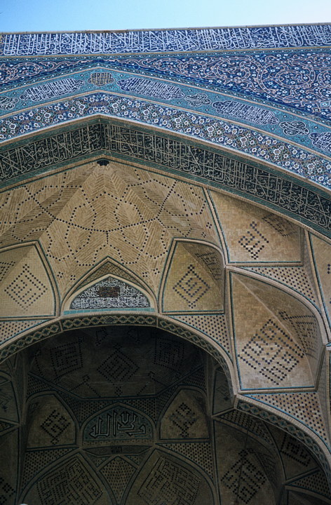 1968. Vorderasien. Nahost. Middle East. Iran. Isfahan (Esphahan). Eingang zur Masdijd in Djomeh (Freitags oder Juma-Moschee) mittler Oberteil von vorher