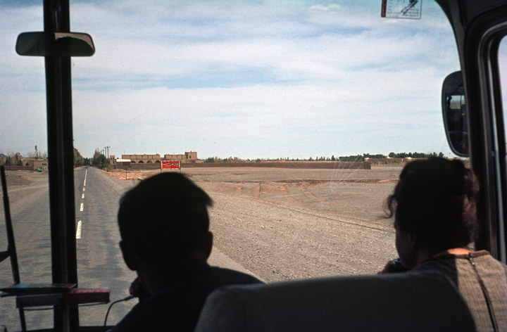 1968. Vorderasien. Nahost. Middle East. Iran. Nain. Blick aus dem Autobus. Einfahrt in Nain. Reisebus