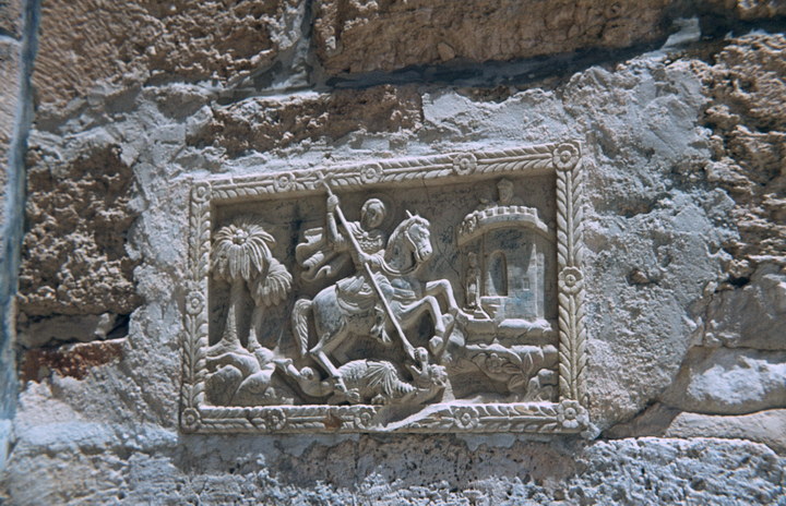 1968. Vorderasien. Nahost. Middle East. Israel. Betlehem. Georgsrelief über dem Zugang zur Georgskapelle (12. Jahrhundert)