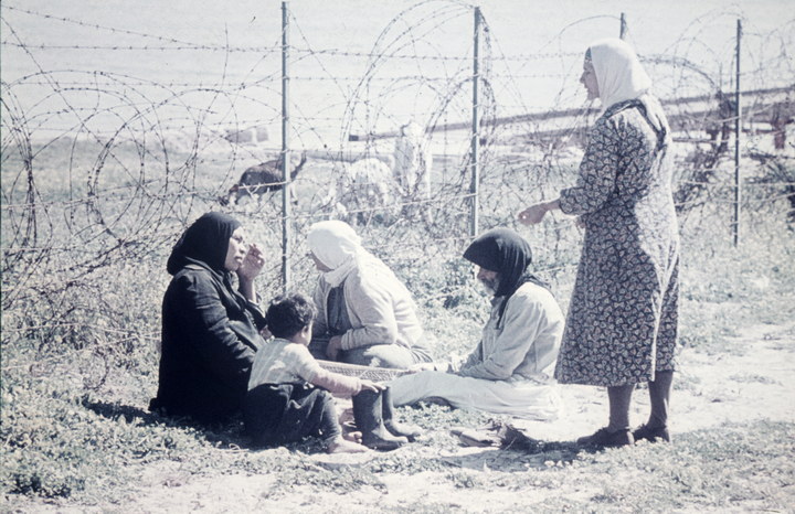 1969. Nahost. Israel. Middle East. Stacheldraht. Landarbeiter mit Kopftuch