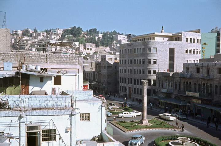 1968. Vorderasien. Nahost. Middle East. Jordanien. Amman. römische Säule in der Mitte der König Faisal-Straße