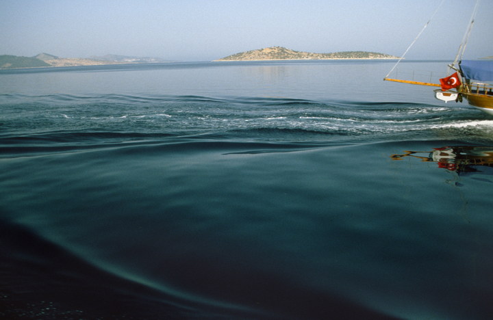 1989. Türkei. Urlauber haben eine Yacht gechartert. Das hölzerne Schiff hat zwei Masten und an denen sich Segel blähen sollten. Aber die gewünschte Fahrt unter Segeln auf dem küstennahen Mittelmeer verläuft anders. Petrus hat sich für Windstille und eine spiegelglatte See ohne Wellen entschieden. Niemand wird Seekrank. Die Sonne brennt auf den Pelz. Der leidenschaftliche Segler würde diese Bootspartie bar jeder Herausforderung langweilig finden. Der Dieselmotor tuckert. Unterwegs wird gebadet. Die schöne Bucht und das glasklare Meer laden dazu ein. Wozu sonst? Mehr gibt es hier nicht. Ein harmloser Ausflug. Die Fotos stammen aus dem Nachlass von Helga Müller. (Gerahmte 35mm Dias / gescannt mit dem Nikon Coolscan 5000). Mehr Bilder aus der Serie gibt es hier.