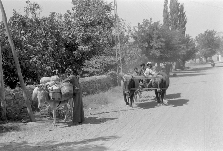 1954. Türkei. Ephesos. Turkey. Türkiye. Mann auf Esel mit Hunden