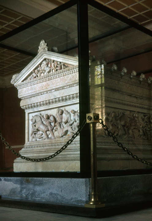 1965. Türkei. Istanbul. Alexandersarkophag, von der Schmalseite mit der Pantherjagd (4. Jahrhundert vor Christus, Sidon, Libanon)