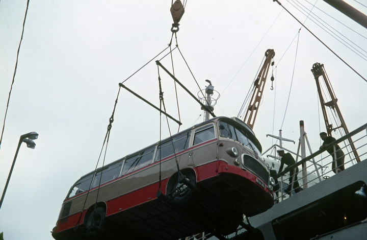 vermutlich 1967. Türkei. Autosbus beim Verladen auf Fähre