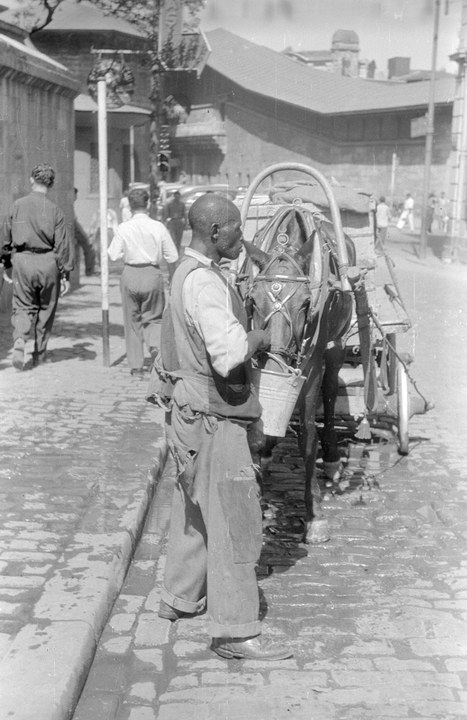 1954. Türkei. Marmara. Istanbul. Turkey. Türkiye. Ein Mann füttert sein Pferd