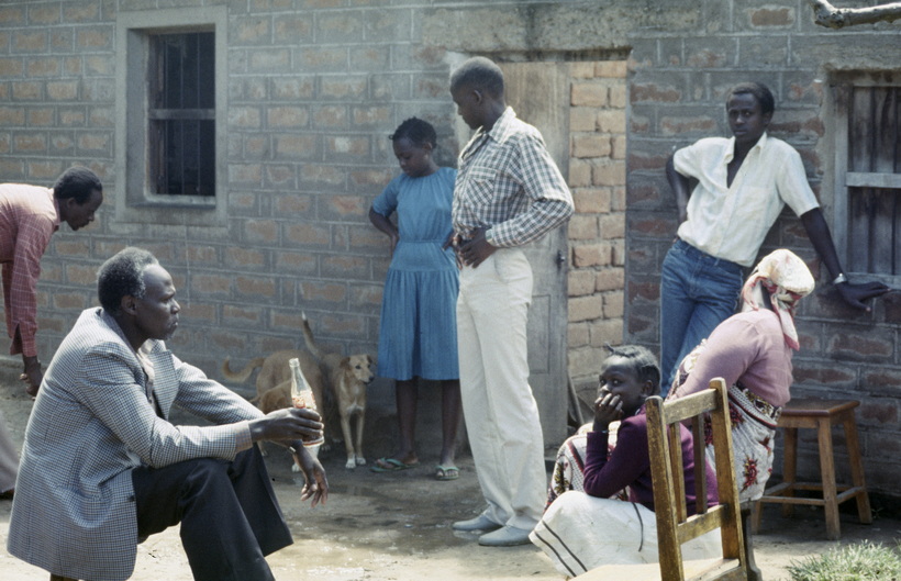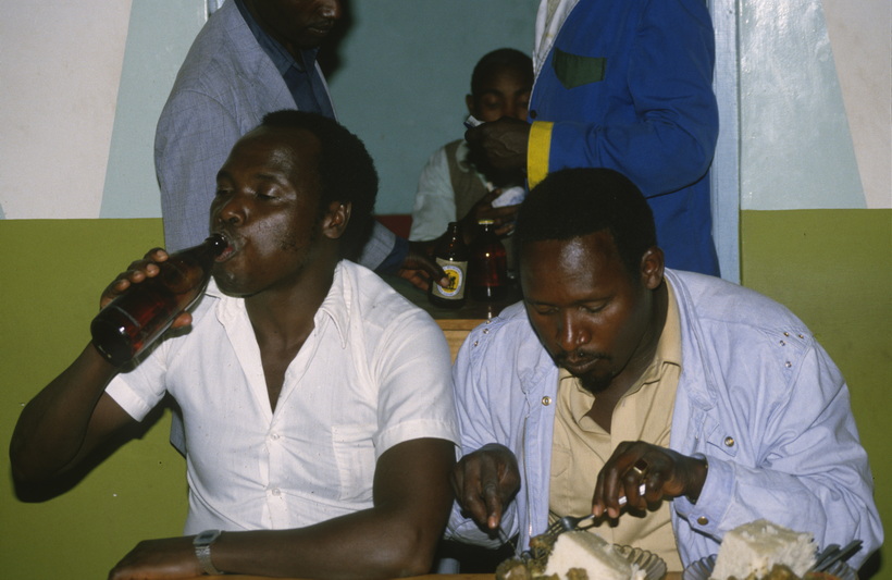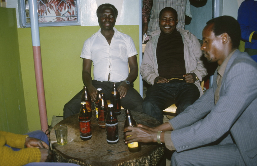 1992. Afrika, Ostafrika, Republik Kenia, Republic of Kenya, Jamhuri ya Kenya (Kisuaheli). Schwarze Kenianer in einer Kneipe beim Bier.