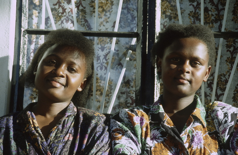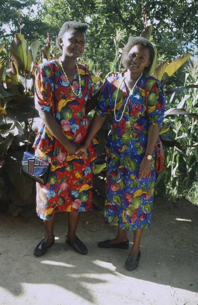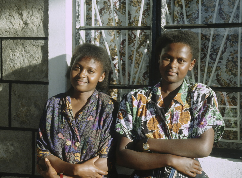 1992. Afrika, Ostafrika, Republik Kenia, Republic of Kenya, Jamhuri ya Kenya (Kisuaheli). Zwei junge schwarze Kenianerinnen. Frauen.