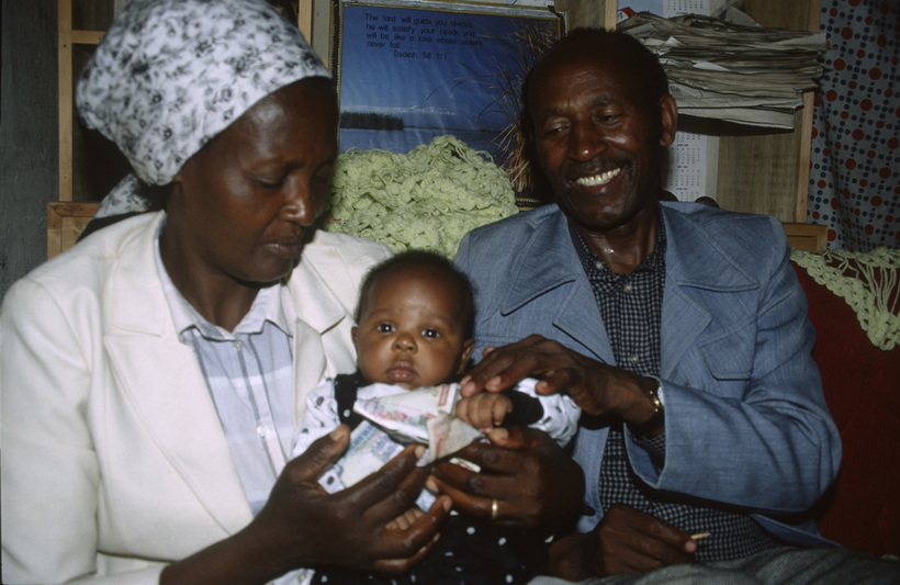 1992. Afrika, Ostafrika, Republik Kenia, Republic of Kenya, Jamhuri ya Kenya (Kisuaheli). Eltern mit Baby. Mutter, Vater, Kind