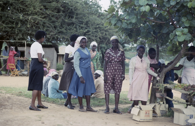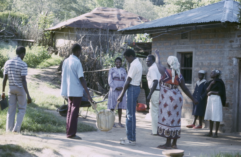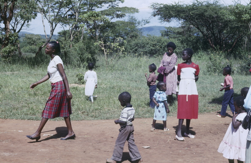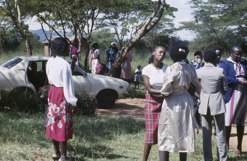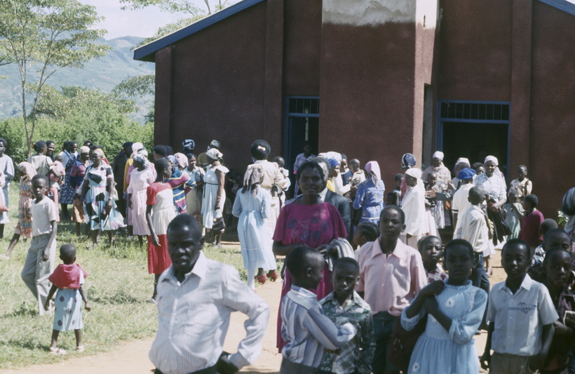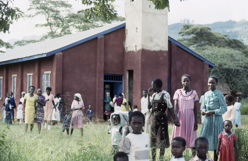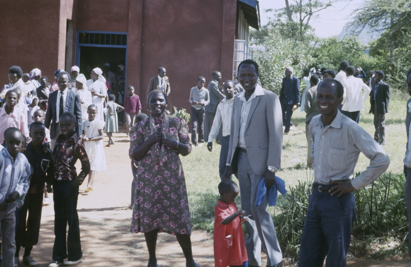 1992. Afrika, Ostafrika, Republik Kenia, Republic of Kenya, Jamhuri ya Kenya (Kisuaheli). Menschen vor dem Gemeindehaus / Kirche.
