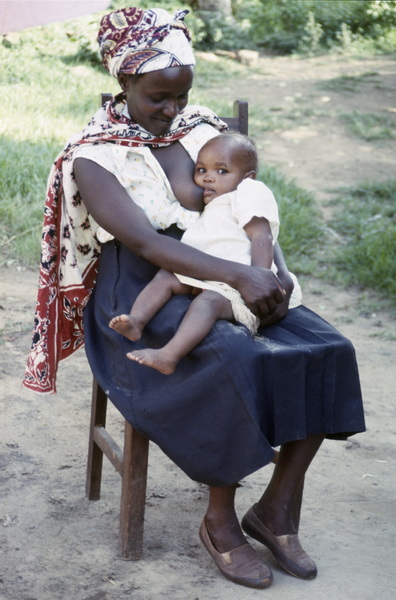 1992. Afrika, Ostafrika, Republik Kenia, Republic of Kenya, Jamhuri ya Kenya (Kisuaheli) Eine Mutter säugt/stillt ihr Baby. Brust