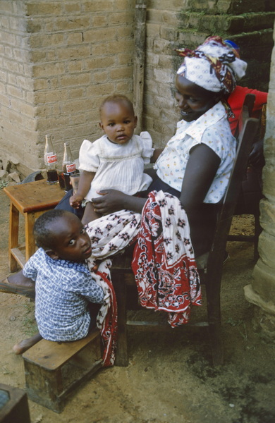 1992. Afrika, Ostafrika, Republik Kenia, Republic of Kenya, Jamhuri ya Kenya (Kisuaheli). schwarze Kenianerin / Mutter mit zwei Kleinkindern.